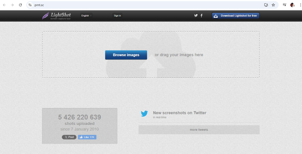 Kalau malas instal, masih bisa kok menggunakannya tanpa perlu menginstal aplikasinya, cukup klik "Browse Images" di tengah lalu pilih gambar yang mau di upload/share, kemudian jika berhasil akan menghasilkan link image yg kita upload: